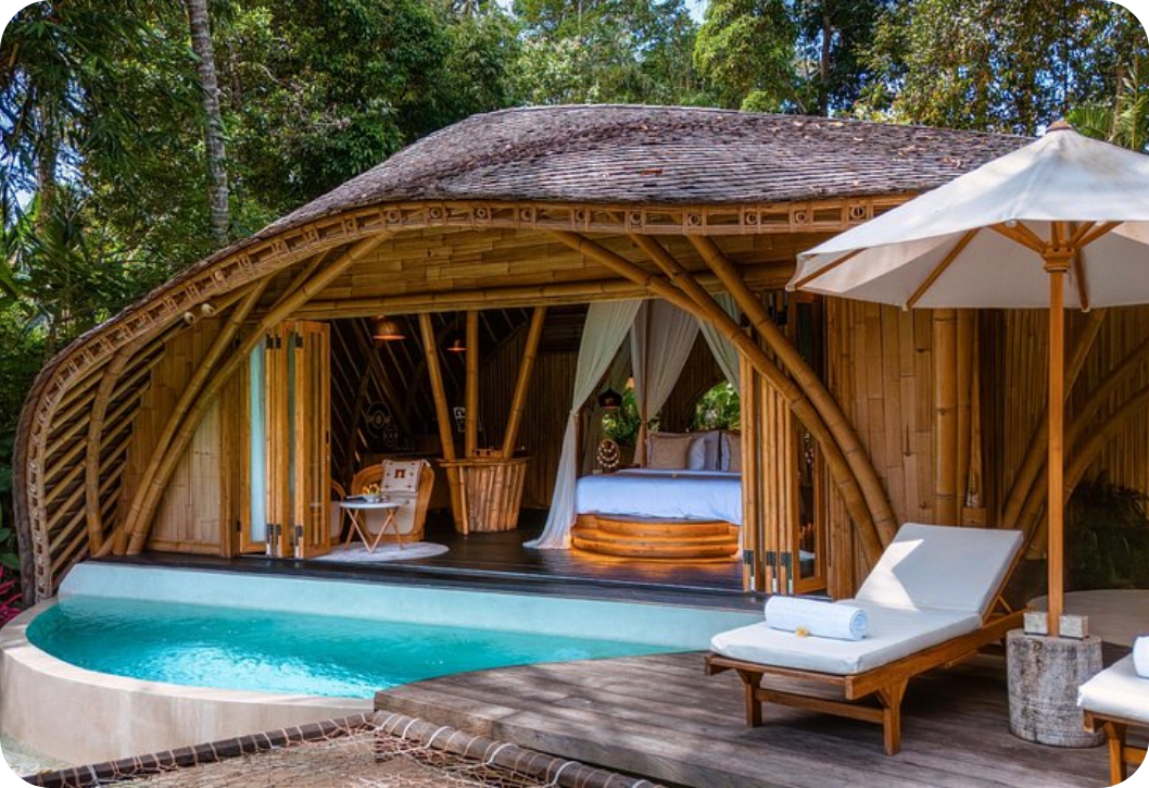 Use of engineered, factory-treated bamboo components to create strong, lightweight, thermally comfortable structures that suit rural or farm settings and eco stays. Starting ~₹800–1,200/sq ft